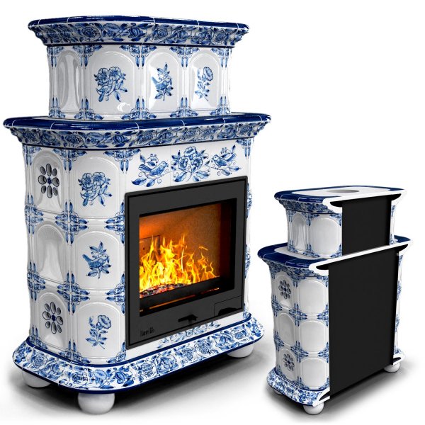 Изразцовый камин Прованс пристенный двухъярусный Дельфт проверенный временем конвекционный камин производства КимрПечь (г.Кимры).