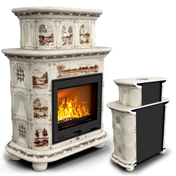 Изразцовый камин Прованс пристенный двухъярусный Деревня- проверенный временем конвекционный камин производства КимрПечь (г.Кимры).