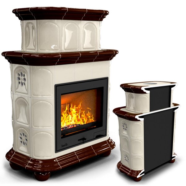 Изразцовый камин Прованс пристенный двухъярусный Шоколад- проверенный временем конвекционный камин производства КимрПечь (г.Кимры).
