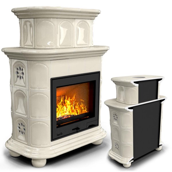 Камин на дровах для частного дома Прованс пристенный двухъярусный Ваниль- проверенный временем конвекционный камин производства КимрПечь (г.Кимры).
