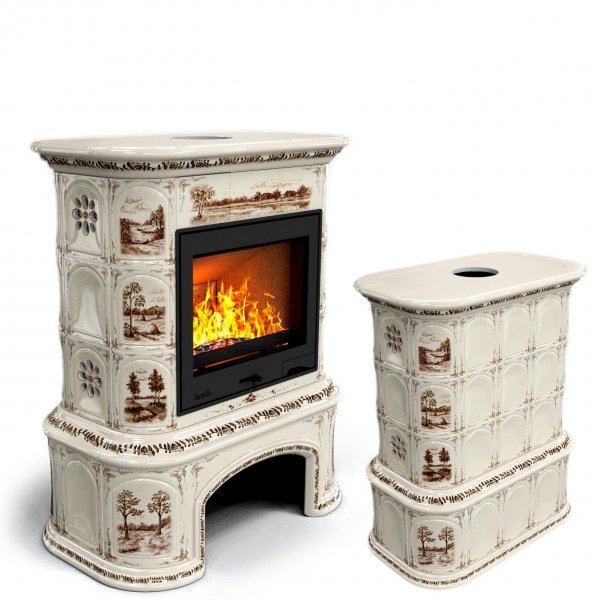 Изразцовый камин Прованс с дровником центральный Деревня проверенный временем конвекционный камин производства КимрПечь (г.Кимры).