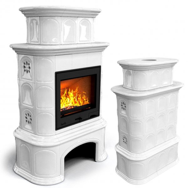 Изразцовый камин Прованс с дровником центральный двухъярусный Белый проверенный временем конвекционный камин производства КимрПечь (г.Кимры).