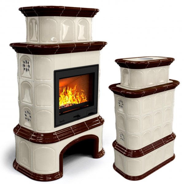 Изразцовый камин Прованс с дровником центральный двухъярусный Шоколад проверенный временем конвекционный камин производства КимрПечь (г.Кимры).