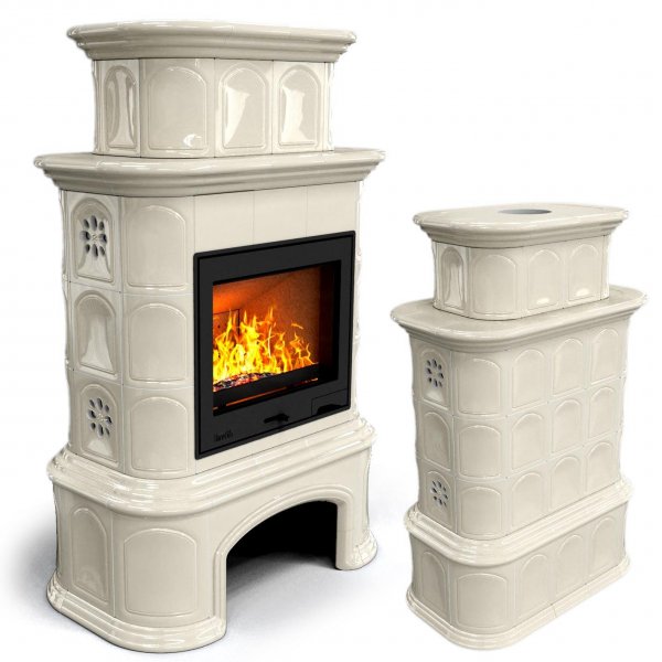 Изразцовый камин Прованс с дровником центральный двухъярусный Ваниль проверенный временем конвекционный камин производства КимрПечь (г.Кимры).