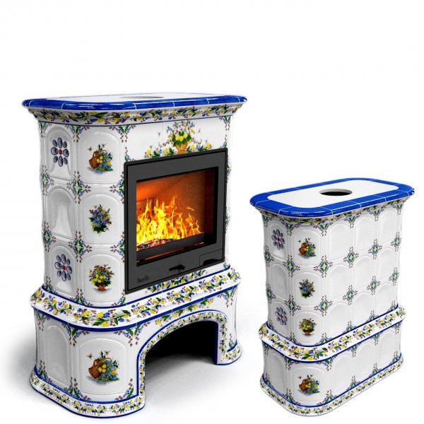 Изразцовый камин Прованс с дровником центральный Луг проверенный временем конвекционный камин производства КимрПечь (г.Кимры).