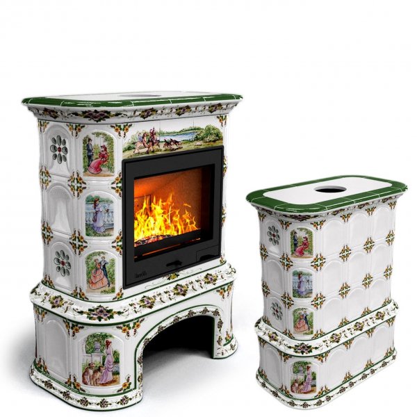 Изразцовый камин Прованс с дровником центральный Усадьба проверенный временем конвекционный камин производства КимрПечь (г.Кимры).