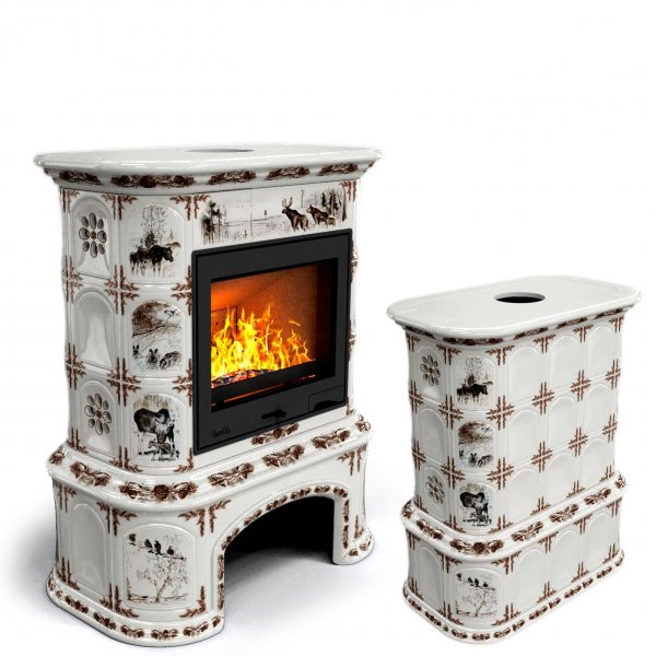 Изразцовый камин Прованс с дровником центральный Зима в лесу проверенный временем конвекционный камин производства КимрПечь (г.Кимры).