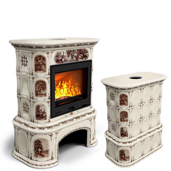 Изразцовый камин Прованс с дровником центральный Звери проверенный временем конвекционный камин производства КимрПечь (г.Кимры).