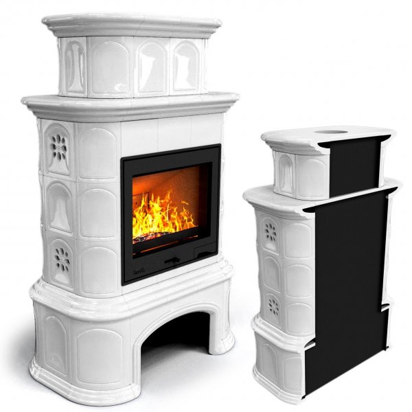 Прованс с дровником пристенный двухъярусный Белый. Камин на дровах для частного дома