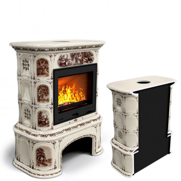 Камин для дома Прованс с дровником пристенный Звери проверенный временем конвекционный камин производства КимрПечь (г.Кимры).