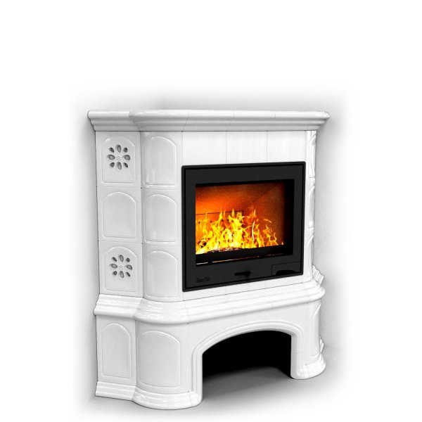 Изразцовый камин Прованс с дровником угловой Белый проверенный временем конвекционный камин производства КимрПечь (г.Кимры).