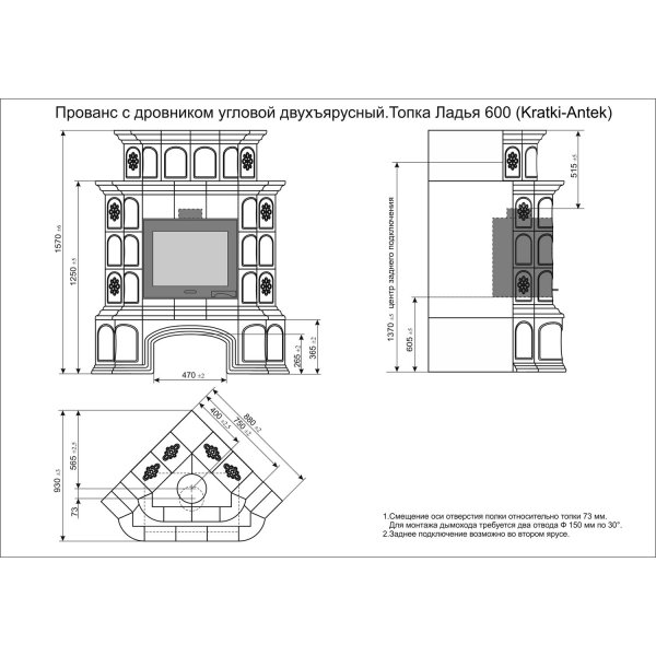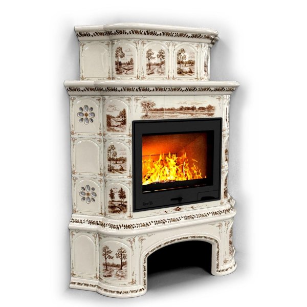 Изразцовый камин Прованс с дровником угловой двухъярусный Деревня проверенный временем конвекционный камин производства КимрПечь (г.Кимры).