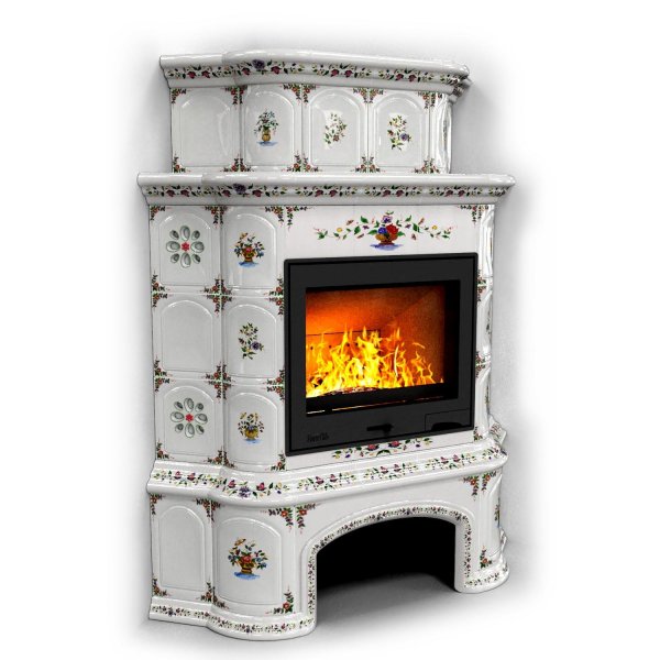 Изразцовый камин Прованс с дровником угловой двухъярусный Руан проверенный временем конвекционный камин производства КимрПечь (г.Кимры).