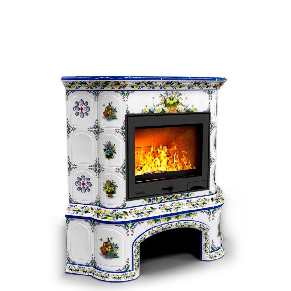 Дровяная печь-камин Прованс с дровником угловой Луг проверенный временем конвекционный камин производства КимрПечь (г.Кимры).
