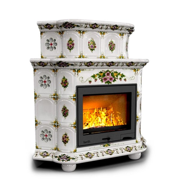 Изразцовый камин Прованс угловой двухъярусный Лето проверенный временем конвекционный камин производства КимрПечь (г.Кимры).