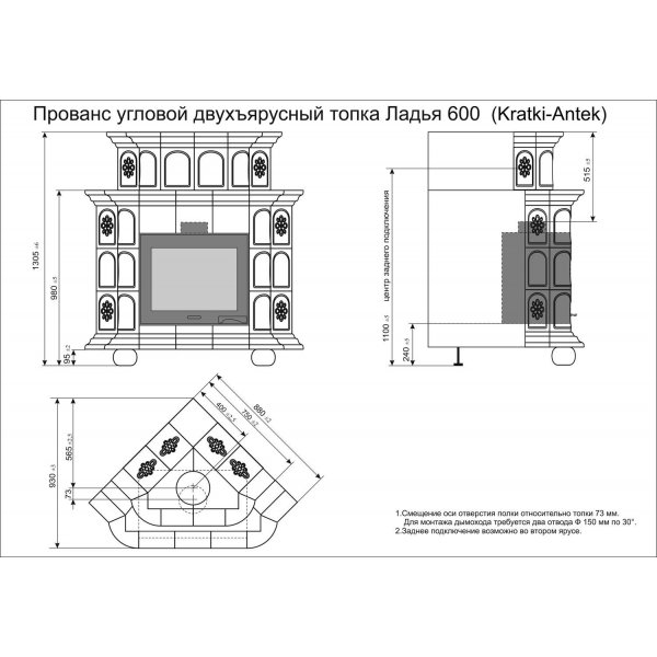 Изразцовый камин Прованс угловой двухъярусный Маки проверенный временем конвекционный камин производства КимрПечь (г.Кимры).
