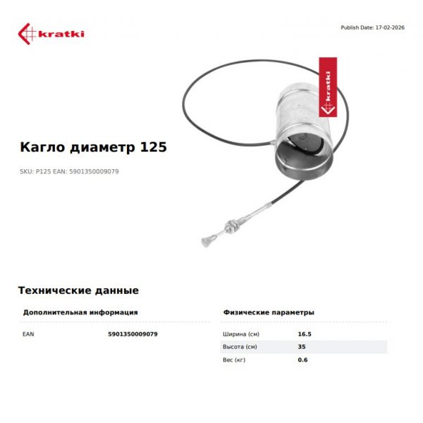 Регулятор допуска воздуха с тросом, d-125мм