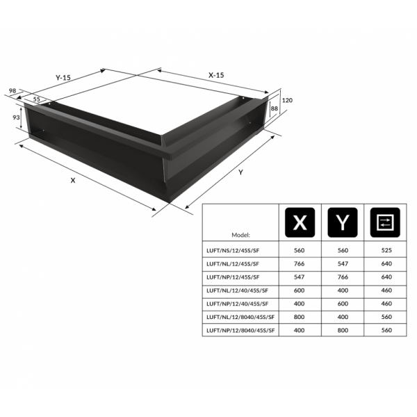 Решётка Kratki Luft 400х800х120 45S угловая левая черная