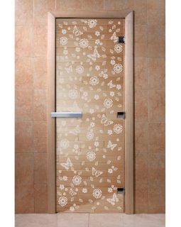 Дверь Цветы и бабочки прозрачная