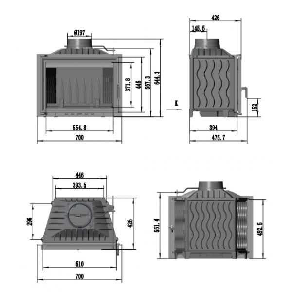 Топка Baron 14 кВт, 700 мм, дымоход d-200мм