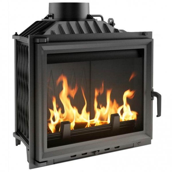Стенки топки сделаны из высококачественного чугуна толщиной 8 мм. и имеют высокую герметичность. Внутри топки находится отбойник пламени, который удлиняет траекторию дымовых газов и улучшает сгорание топлива. Топка имеет встроенный шибер для ручного управления тягой в дымоходе. Топочная дверца укомплектована термостойкой керамикой, которая выдерживает температуру до 660 °C. Дверку можно легко открыть без защитной перчатки когда камин горит благодаря съемной ручке, которая всегда остается холодной. Уменьшение образования сажи на стекле благодаря системе чистого стекла (воздушная завеса). Встроенный зольный ящик позволяет легко удалять золу.Ограничитель в топке помогает поддерживать чистоту и защищает от выпадения дров и углей.