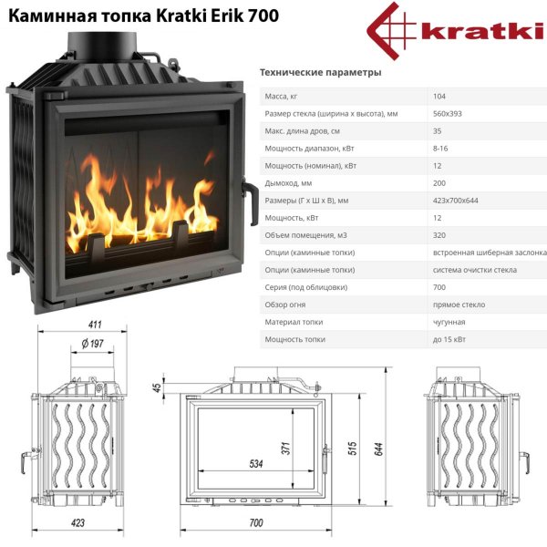 Топка для камина Kratki Erik-700