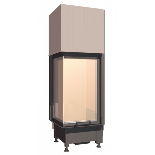 Каминная топка для угловых каминов с цельным угловым стеклом.